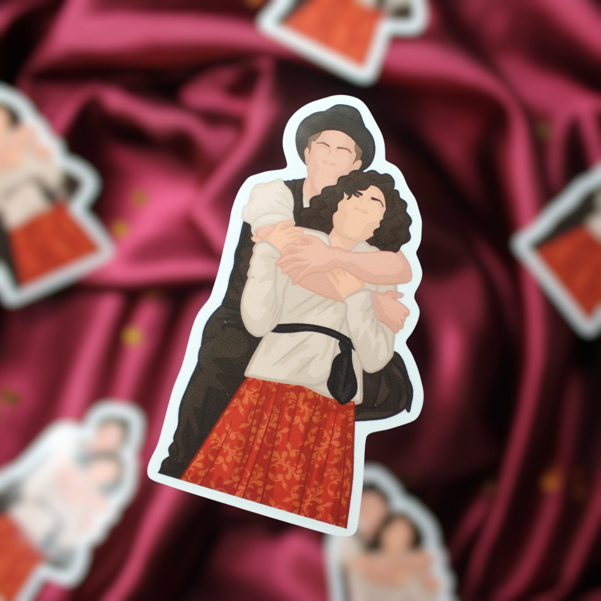 This sticker pictures Bonnie and Clyde from Bonnie and Clyde The Musical with a glossy finish.