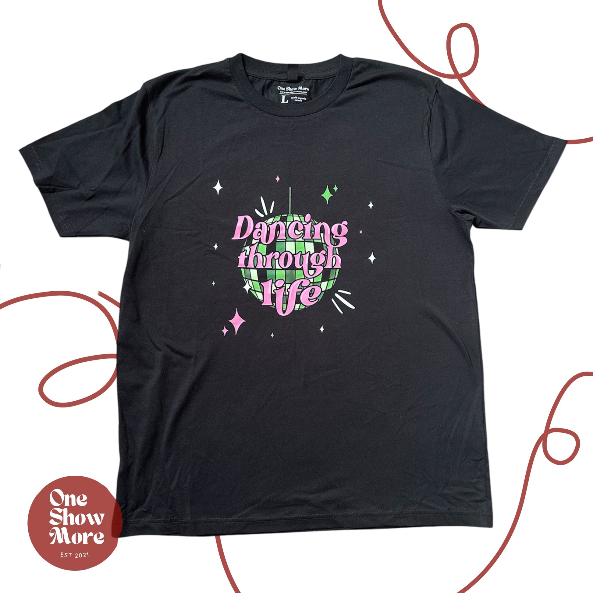 Black cotton T-shirt with a Wicked the Musical inspired quote printed on the front. Available in sizes small to extra extra large.
