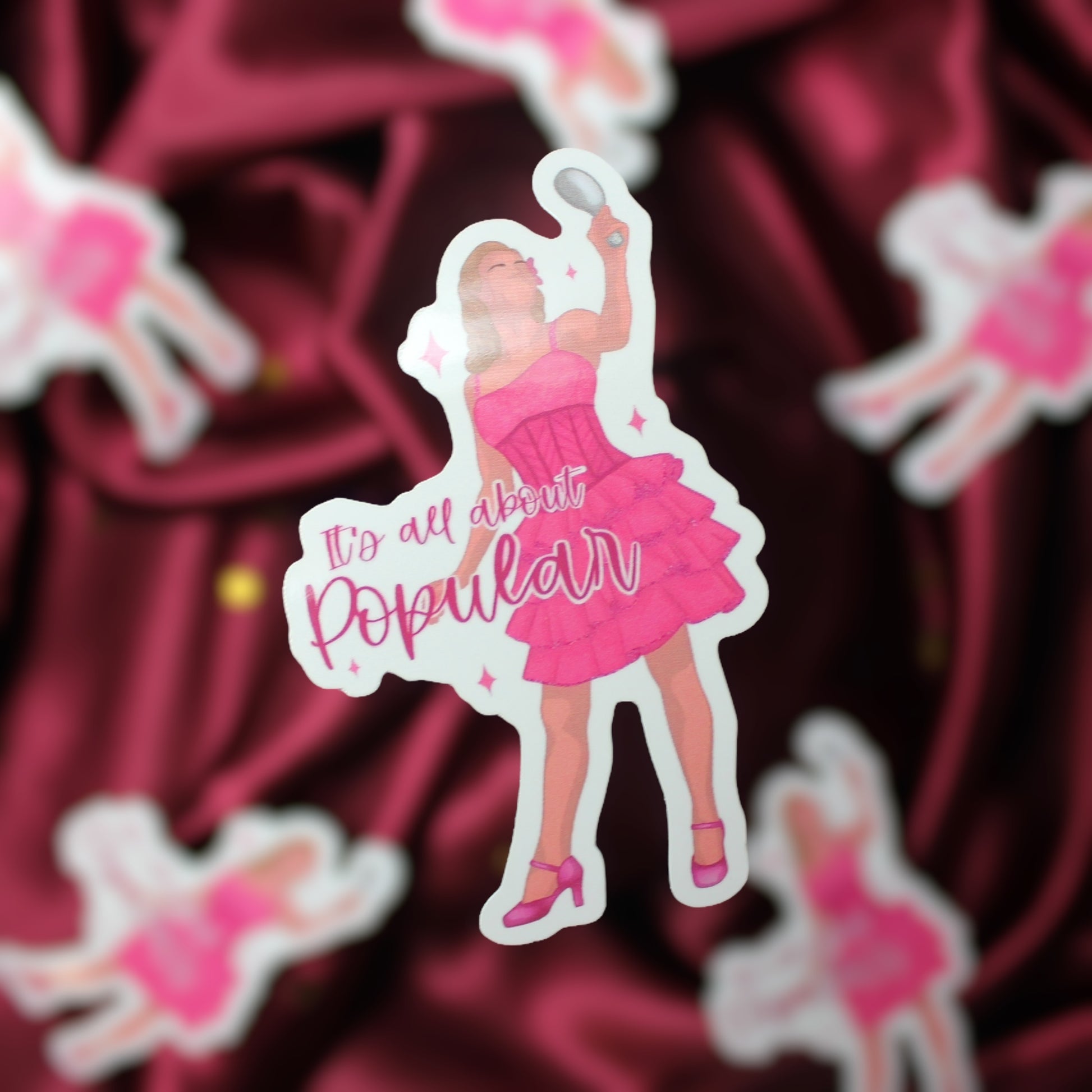 This sticker pictures Glinda from Wicked The Musical alongside a quote with a glossy finish. Illustrations drawn by Vic from I can’t draw faces (@icant_drawfaces on Instagram).