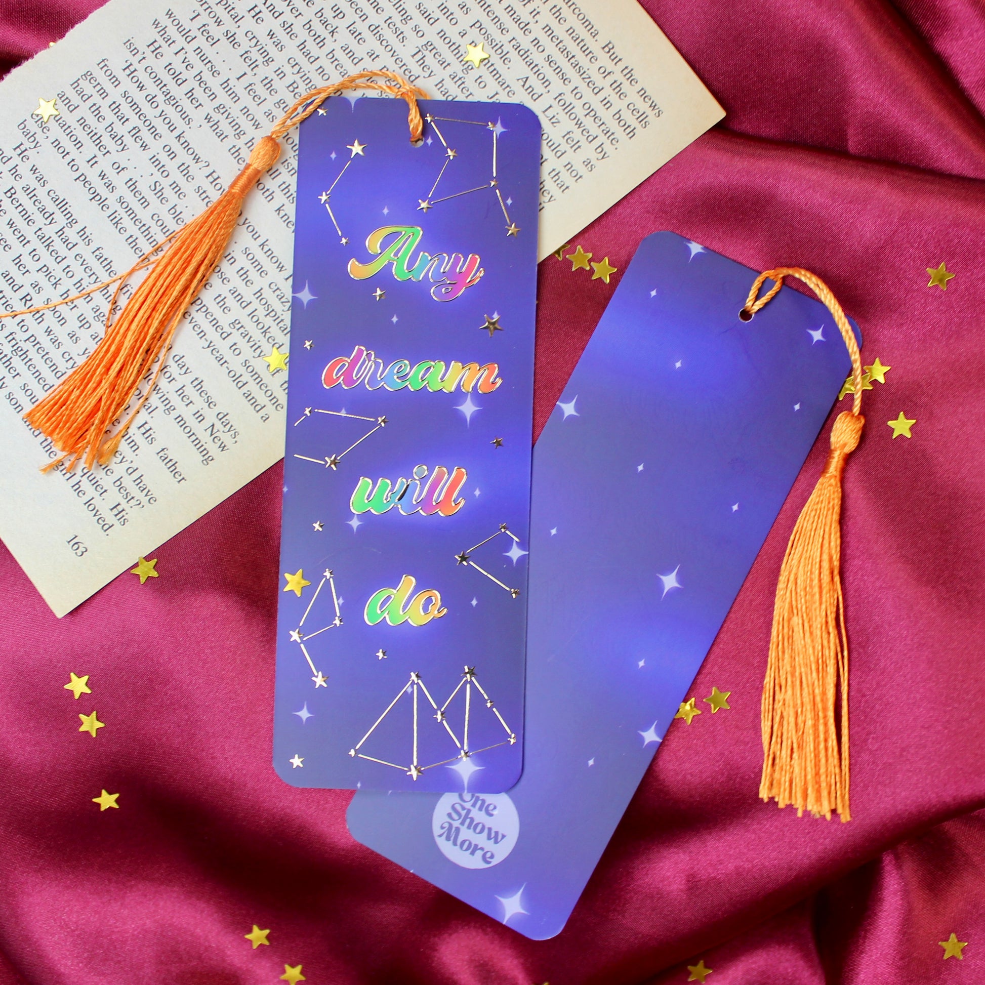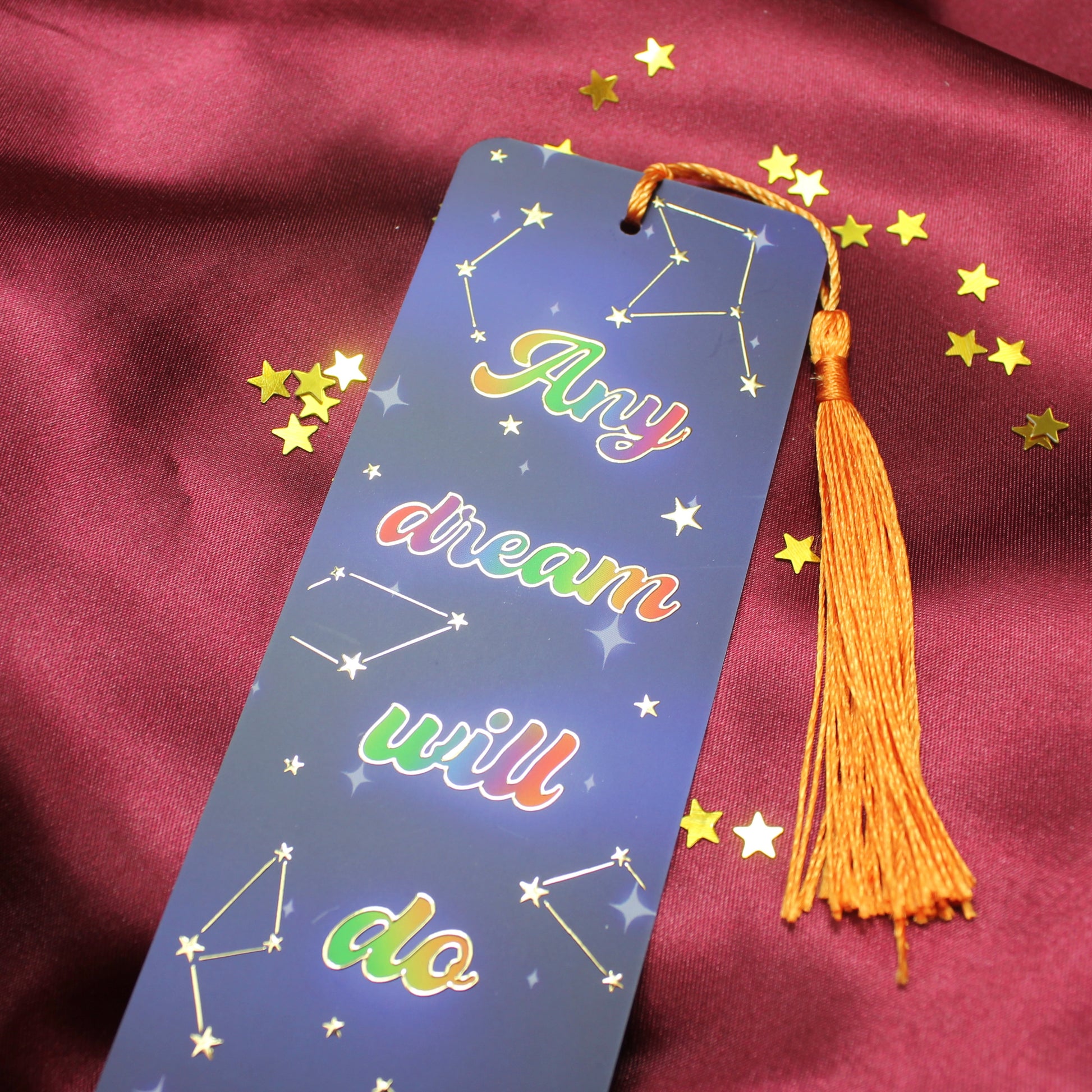 Printed on 400gsm quality card with a matte finish, this bookmark measures 5.2cm by 15 cm and finished with an orange tassel.