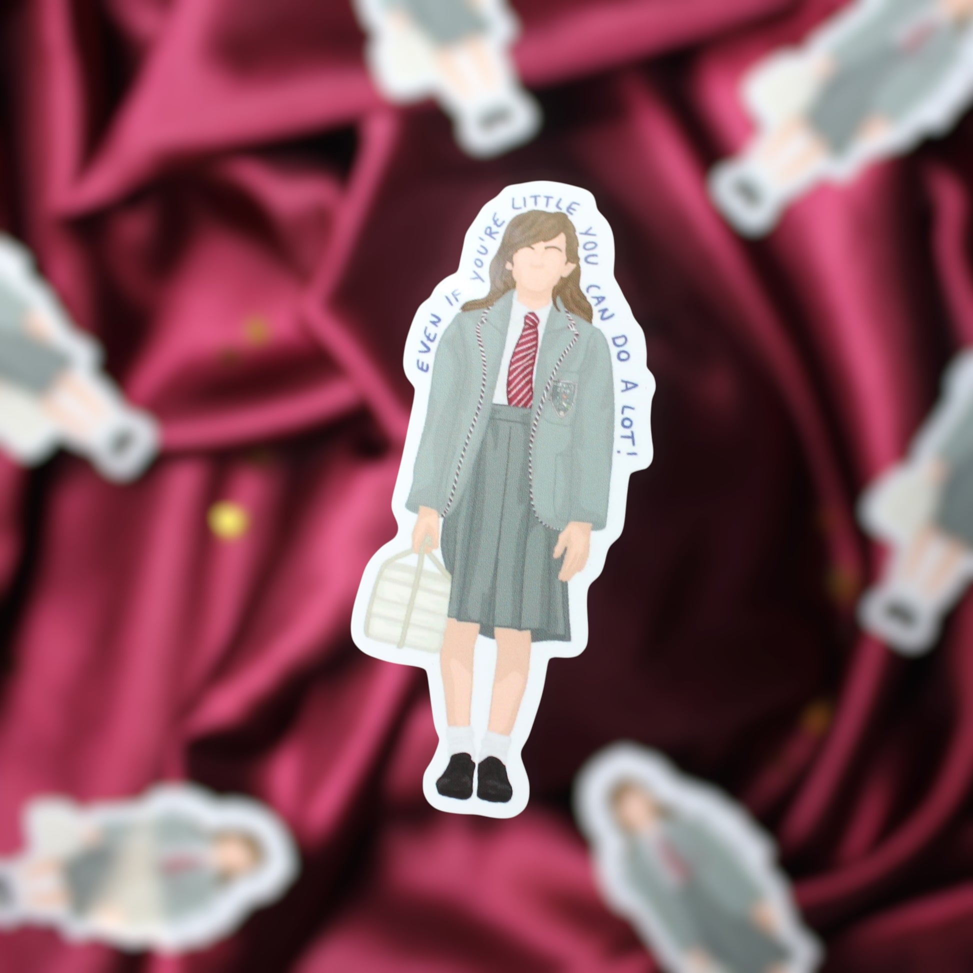 This sticker pictures Matilda Wormwood from Matilda The Musical with a glossy finish. Illustrations drawn by Vic from I can’t draw faces (@icant_drawfaces on Instagram).