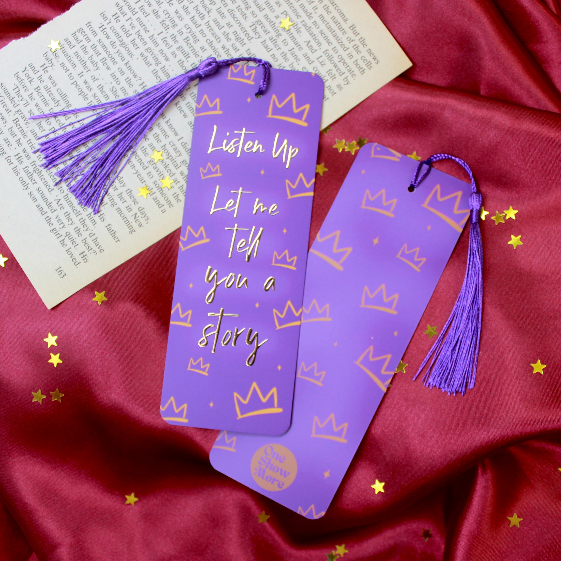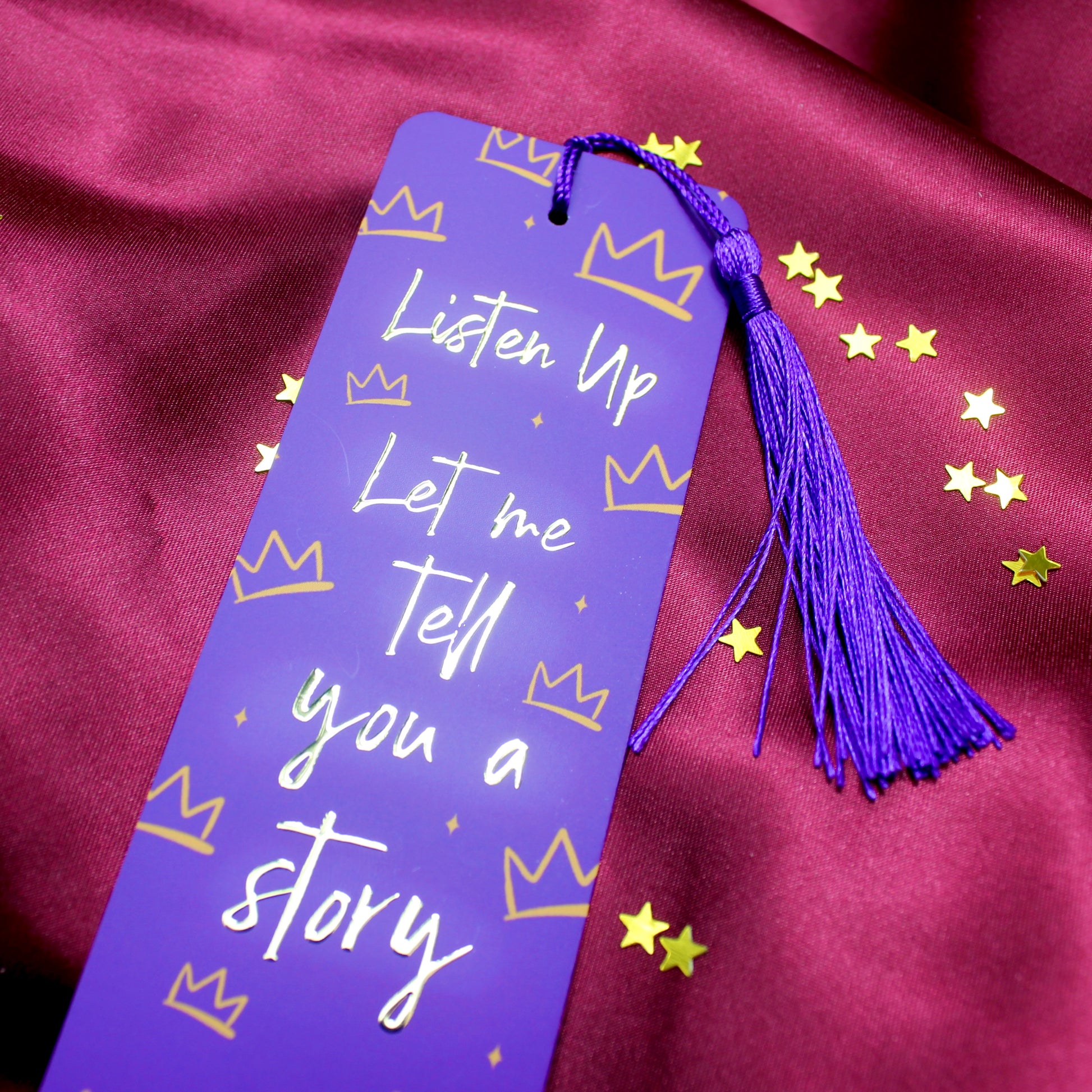 Printed on 400gsm quality card with a matte finish, this bookmark measures 5.2cm by 15 cm and finished with a gold tassel.
