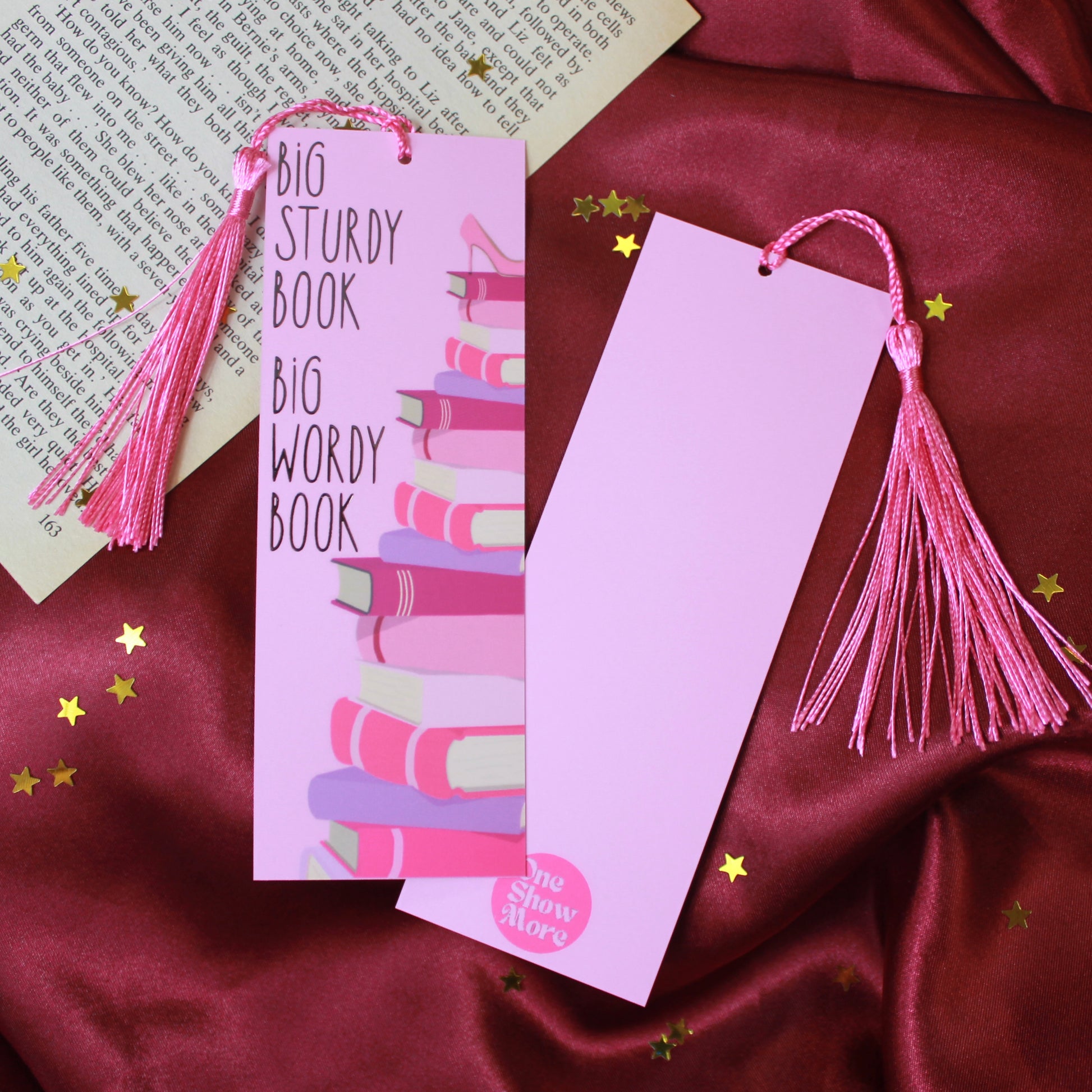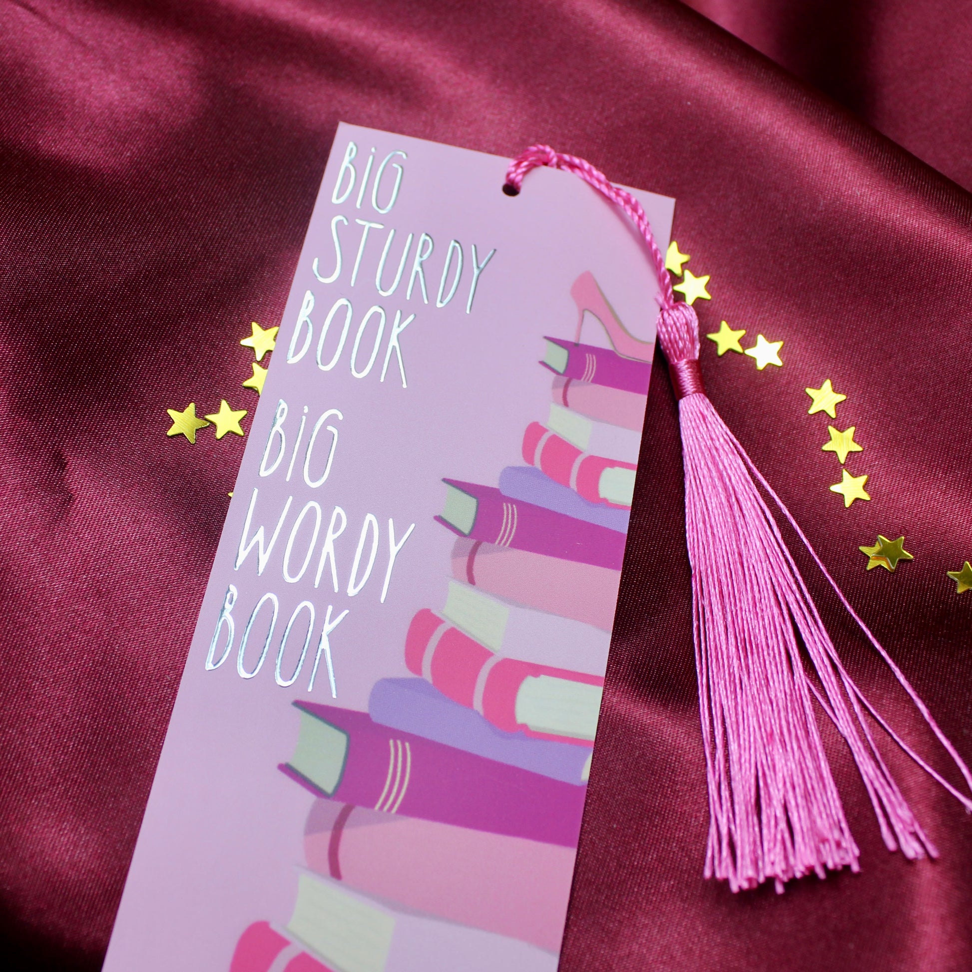 Printed on 400gsm quality card with a matte finish, this bookmark measures 5.2cm by 15 cm and finished with a pink tassel.