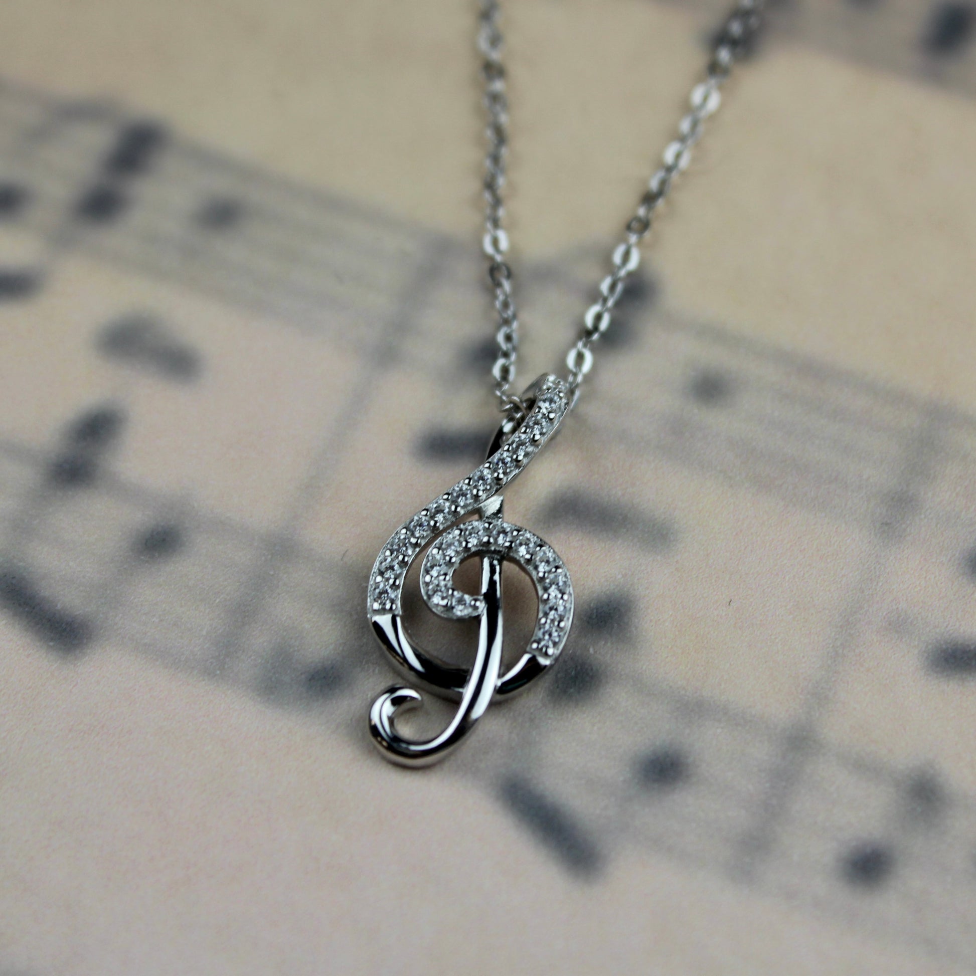 Treble Clef Cubic Zirconia Necklace